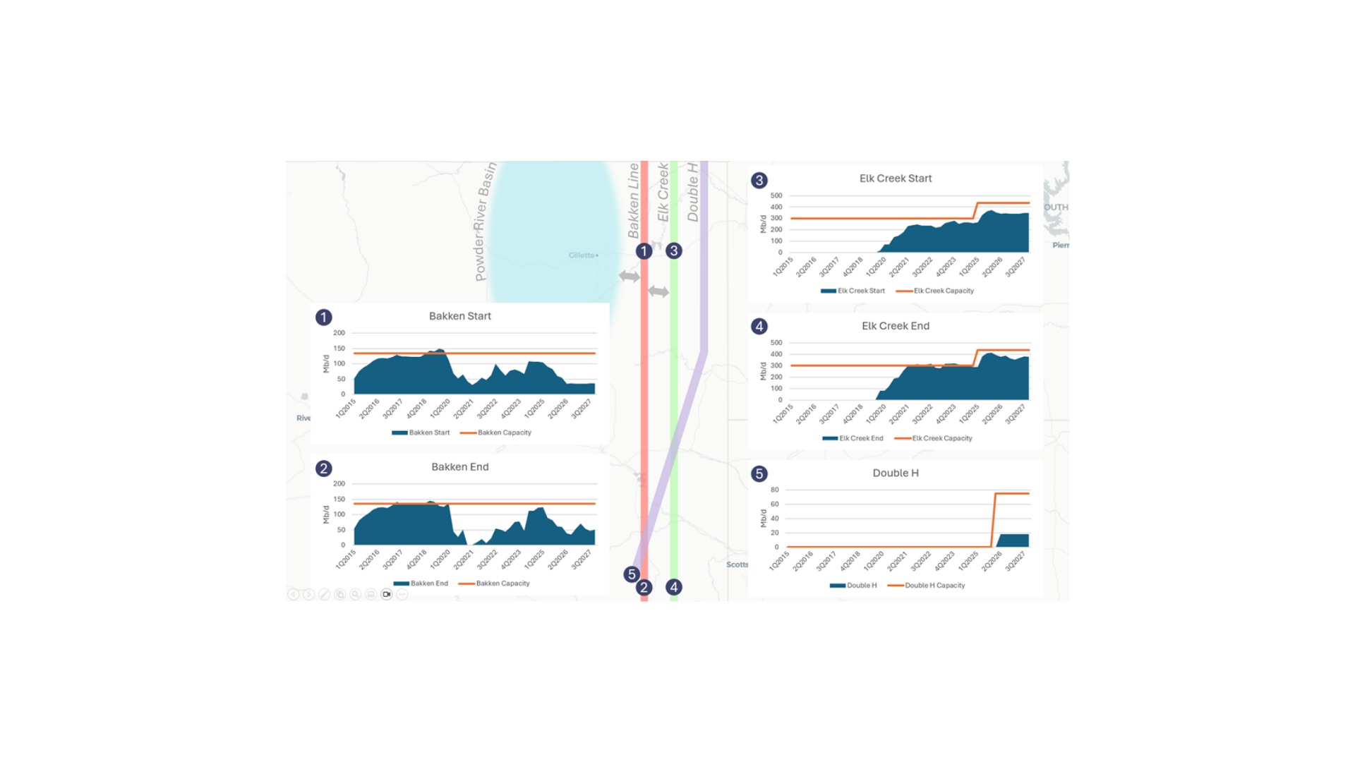 Explore the entire value chain from wellhead to demand with a first-of-its-kind consolidated energy dashboard. See volumes, rates, and flows at every stop along the chain with crystal clarity.
