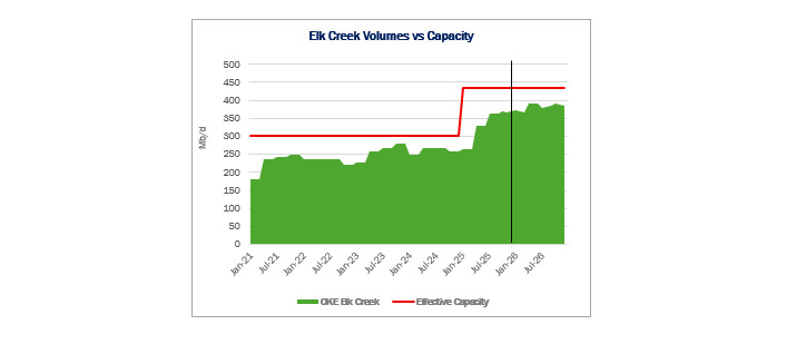 1Jan2026ONEOK Ramps Volumes on Expanded Elk Creek PipelineEnterprise, Ethane, Natural Gas Liquids, Northeast, The Daley NoteONEOK continues to rapidly fill its expanded Elk Creek Pipeline, diverting more ethane from its legacy Bakken pipeline to the…READ