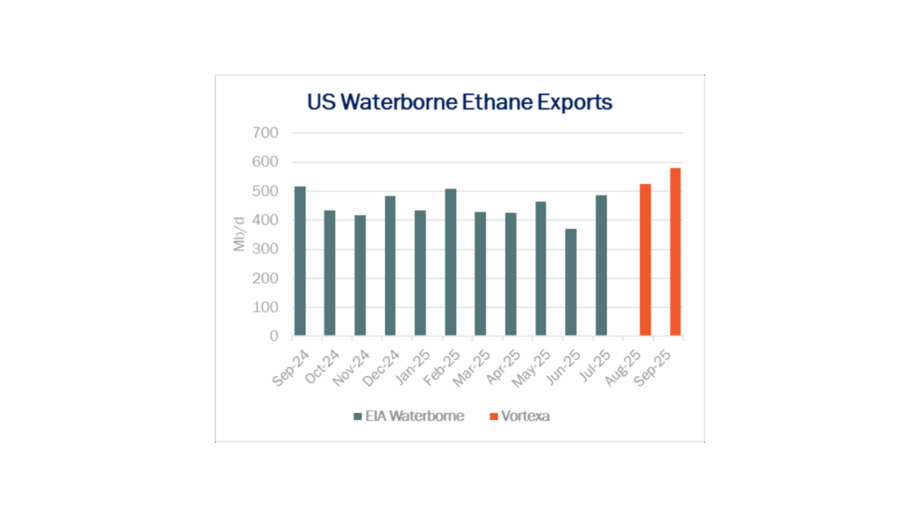 3Oct2025Neches River Ramp Pushes Ethane Exports to Record in SeptemberEagle Ford, Ethane, Natural Gas Liquids, NGL Insider, PermianUS ethane exports hit a record high in September thanks to a ramp at Enterprise Products’ (EPD) new Neches River…READ