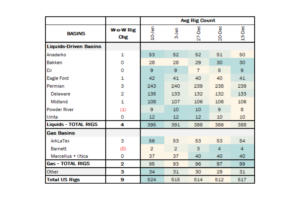 The total US rig count increased by 9 during the week of Jan. 10 from 515 to 524. Liquids-driven basins increased 4 rigs W-o-W from 391 to 395.