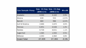 Supply & Demand: The US natural gas pipeline sample, a proxy for change in oil production, decreased 0.3% W-o-W across liquids-focused basins.