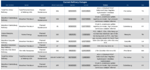 As of Oct. 23, there was ~1,800 Mb/d of refining capacity offline for planned maintenance. This week, additions to planned maintenance occurred with 430 Mb/d from BP’s Whiting refinery and 120 Mb/d from ExxonMobil’s Baton Rouge refinery.