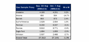 The US natural gas pipeline sample, a proxy for change in oil production, increased 0.3% W-o-W across all liquids-focused basins.