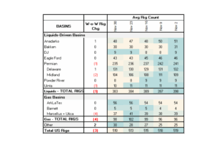 The total US rig count decreased during the week of Nov. 30 from 513 to 510. Liquids-driven basins lost 3 rigs W-o-W from 384 to 383.