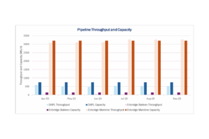 Both companies teased the plan on their 3Q25 earnings. ET briefly mentioned a Dakota Access North project, while ENB said it is “advancing Mainline Optimization Phase 2.” The initiative would add 250 Mb/d of capacity to move Canadian barrels onto the DAPL system, they said. ET operates DAPL and has a 38.2% interest, while ENB holds 27.6%. The partners plan to gauge market interest before moving forward and expect a final investment decision (FID) by mid-2026.