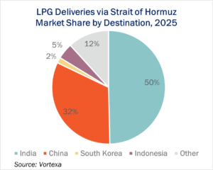India’s residential LPG demand requires blended cargoes of propane and butane, adding another layer of constraint to the US export response. Not every terminal can easily assemble mixed LPG cargoes, and butane-handling capacity in particular is already tight at several key facilities.