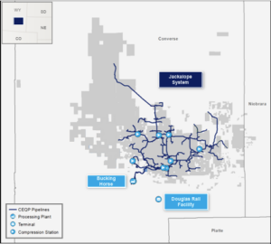 - Tallgrass Energy. Tallgrass also operates Powder River midstream assets, including the nearby Casper and Douglas processing plants and Tallgrass Interstate Gas Transmission (TIGT). Folding in Jackalope/Bucking Horse could lift volumes on TIGT and strengthen one-stop midstream services in the basin.