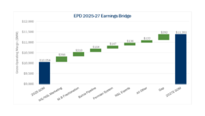 For a company the size of Enterprise, it’s an ambitious target. Can EPD really expect to grow EBITDA by 13.3% from 2025 to 2027? Based on East Daley’s latest EPD Financial Blueprint model, we believe the growth trajectory is achievable. The earnings bridge in the figure on page 1 shows the path East Daley expects EPD to follow to achieve the growth target.