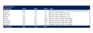 - Haynesville: KinderHawk Flies High: Gas samples in the Haynesville are down slightly from 2Q25 to 3Q25. However, KMI’s KinderHawk system continues to outperform, posting 21% Q-o-Q gas sample growth. The key drivers behind this growth are BP, Comstock Resources (CRK) and Aethon, all active producers on the system.