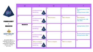 Calendar: EDA will be in Houston Feb. 25-27 and Los Angeles Mar. 17-19. Earnings reviews for ET, WES and TRGP, along with an earnings preview for SOBO, will be released by Feb. 20. The next financial model update will occur on Mar. 13.