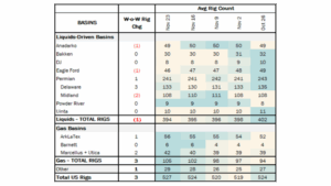The total US rig count increased during the week of Nov. 23 from 524 to 527. Liquids-driven basins decreased by 1 rig W-o-W from 395 to 394.