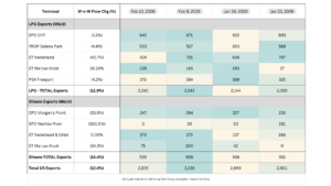 Exports: NGL exports declined 12.4% W-o-W for the week ending Feb. 13.