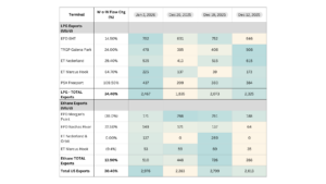 Exports: LPG exports increased across all terminals for the week ending Jan. 2, driving a 34% W-o-W gain.