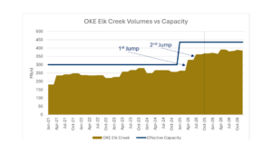 Infrastructure: Since the initial volume increase on Elk Creek in 2Q25, the pipeline saw another step-up in 3Q25, with throughput rising by +33 Mb/d.