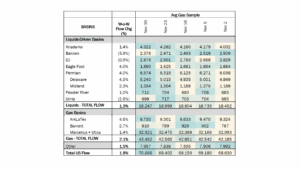 Samples in liquids-focused basins increased 1.3% to 19.2 Bcf/d. The Permian sample gained 4.0% to 6.6 Bcf/d, while the Eagle Ford sample also rose 4.0% W-o-W.