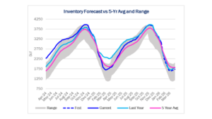 This heating season has proved difficult to forecast as weather forecasts oscillate between extreme cold and extreme warmth. Current forecasts are trending warmer through the end of February, but we will wait until we get a view of March before making a declaration on whether winter is over or not. A small surplus or small deficit is the most likely outcome; how much or how little depends on the weather.