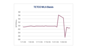 At the end of January, TETCO WLA prices (East Daley’s proxy for the Gillis hub) traded $1.63/MMBtu above the Henry Hub, spurred by demand and supply outages from the severe storm. For a brief period, WLA traded as much as $6.28 above the Henry Hub benchmark (see figure). Volatility like this creates opportunity for new storage projects, spurring buyers and sellers to seek more flexibility to manage regional price swings.