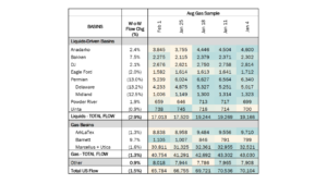 Samples in liquids-focused basins declined 2.9% to 17.0 Bcf/d, led by a sharp 13% drop in the Permian sample. However, the Anadarko and Bakken samples rose as operations began to recover from the winter storm.