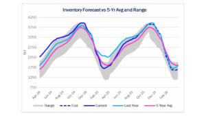 Looking ahead to November, we anticipate a net withdrawal for the month — but just barely. Assuming working gas exits October at 3,911 Bcf, we forecast total withdrawals for November of just 18 Bcf in the latest Macro Supply & Demand Report, leaving inventory at 3,891 Bcf as of Nov. 28.