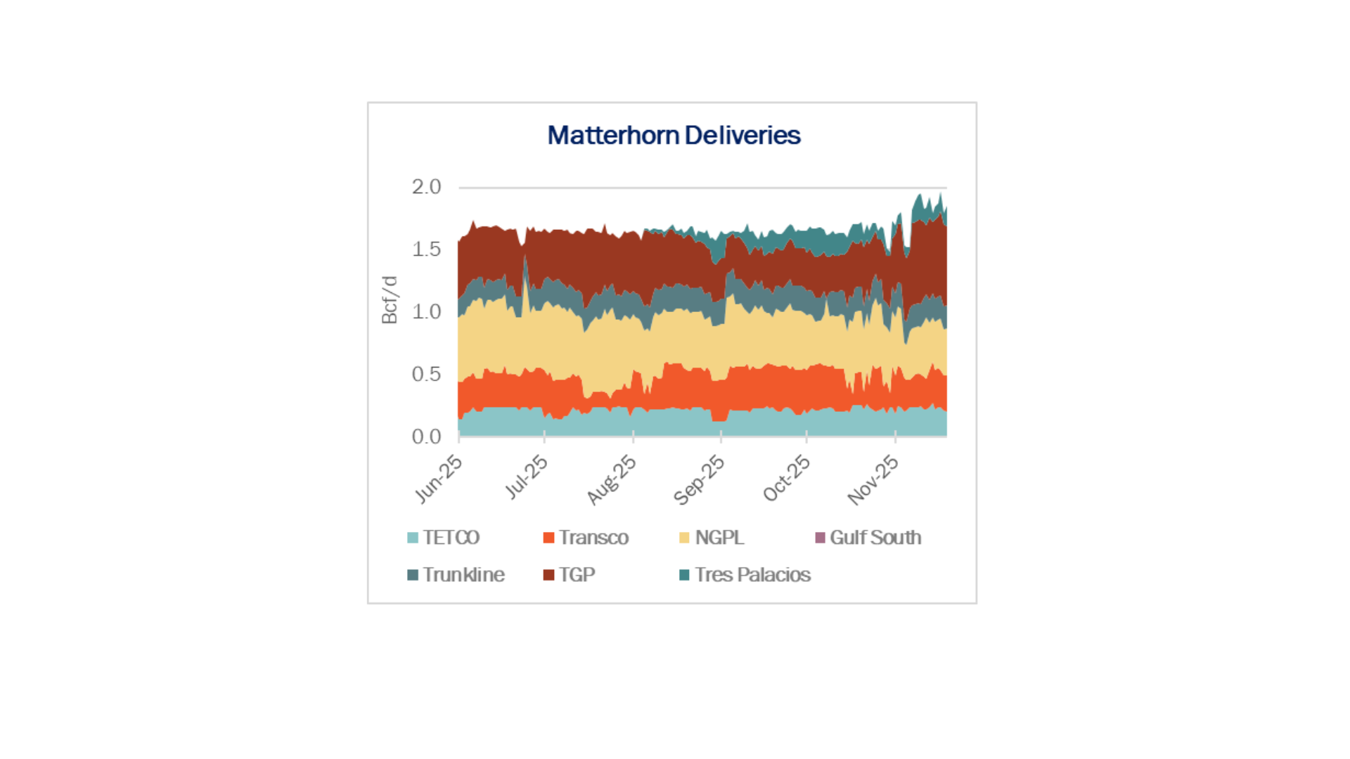 Infrastructure: An expansion of the Matterhorn pipeline appears to have started operations in early November, based on interstate pipeline flow samples monitored by East Daley.