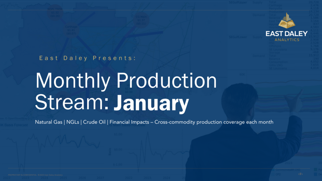 17Dec2025Monthly Production Stream: DecemberEast Daley Analytics’ December Production Stream breaks down the U.S. natural gas, crude, and NGL trends closing out 2025 and…READ